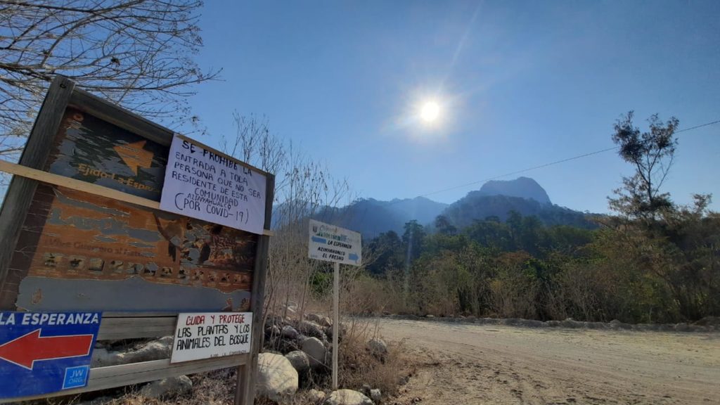 En los cruceros hacia otras comunidades, y en puntos estratégicos, fueron colocados carteles con la leyenda “Se prohíbe la entrada de toda persona que no sea residente de esta comunidad, por Covid-19”.
