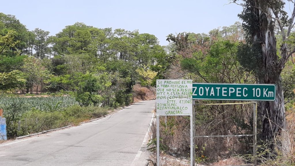 A esta iniciativa, se sumó la comunidad de Zoyatepec, quienes colocaron un letrero en la salida del poblado del Ocotito, con la misma prohibición “Se prohíbe la entrada a toda persona que no sea residente de esta región, por Covid-19, atentamente, Ejidos de Azinyahualco y Zoyatepec”.