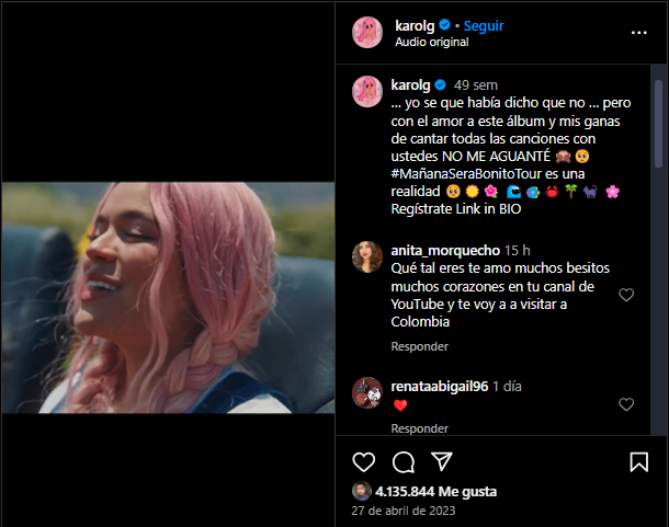 Karol G se presentó el 5 y 6 de abril a las 8 p.m. en el Estadio Nemesio Camacho el Campín en Bogotá, donde sucedieron ciertas situaciones que han generado polémica. Desde las 3 p.m. de la tarde los fanáticos de la cantante hicieron fila para acceder al evento de Mañana será bonito LATAM tour. La artista ha afirmado que este será su última gira durante un buen tiempo. Incluso, dudaba de si hacer este tour, pero el 27 de abril de 2023 anunció su inicio: