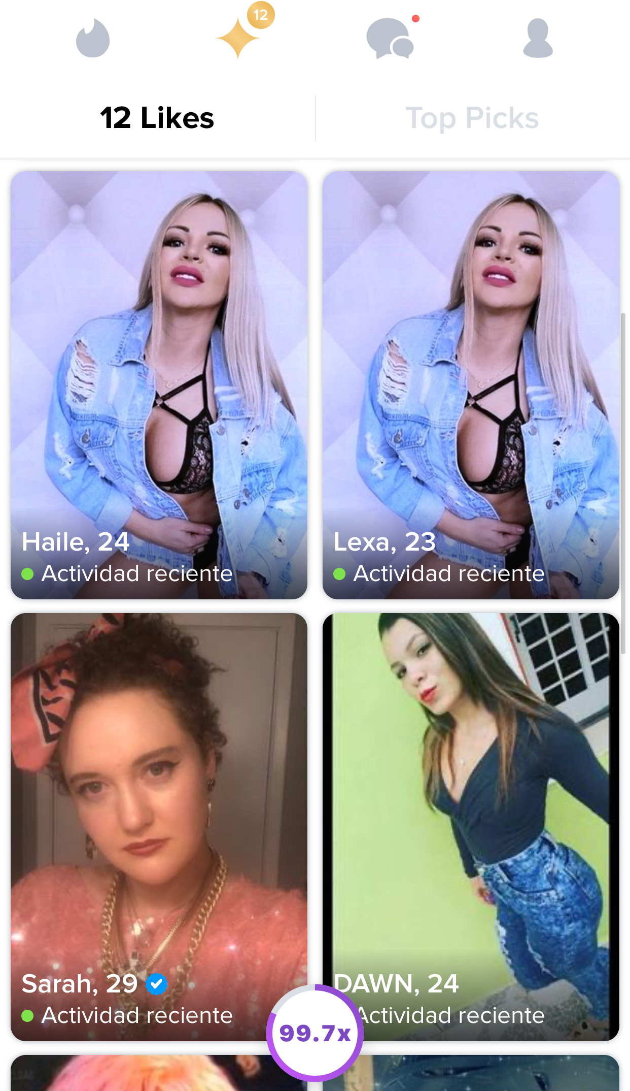 La apariencia de perfiles con fotos idénticas de personas atractivas pero con aspectos que indican que es probablemente una toma de alguna/algun modelo profesional son comunes.