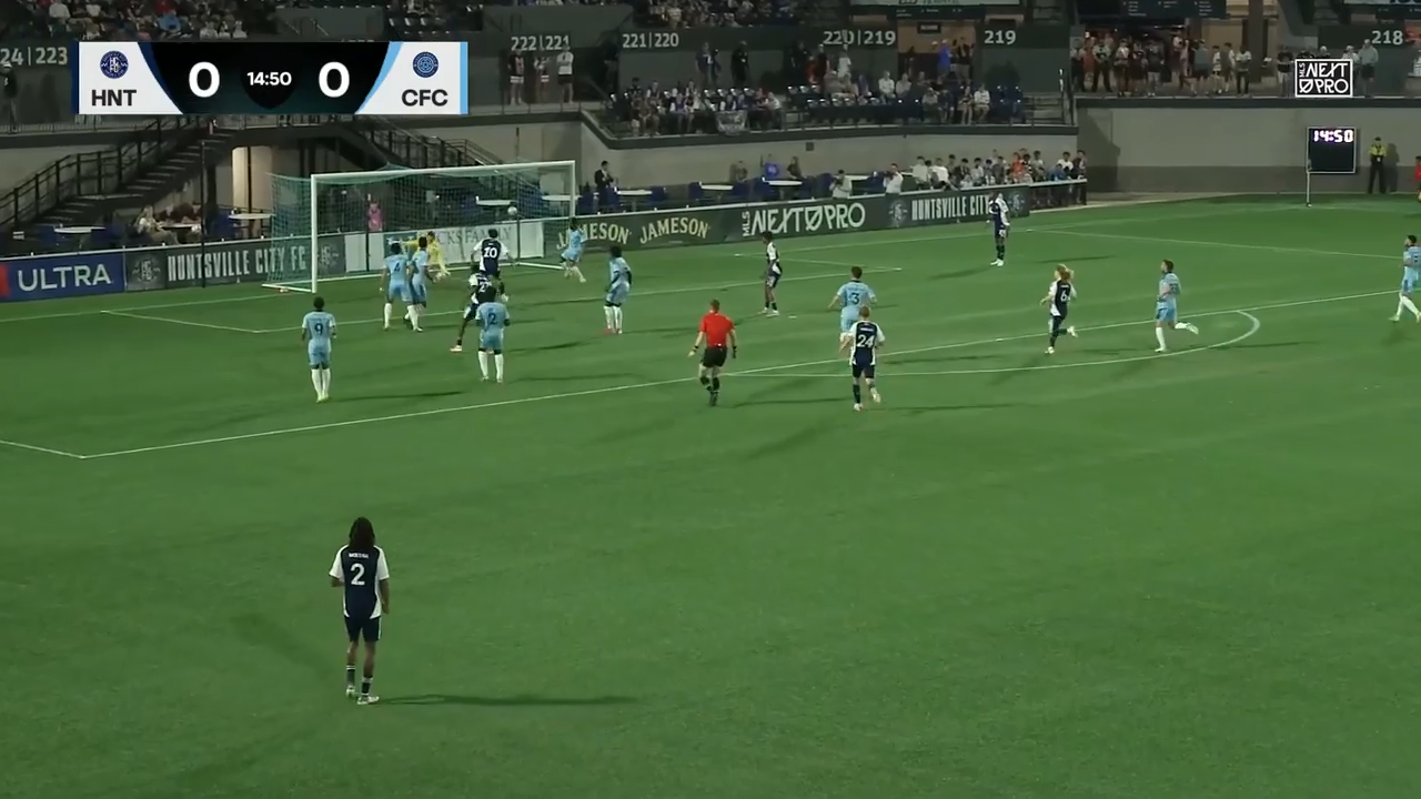 Huntsville comenzó bien y tomó el control en la primera mitad. Abdul Shakur Mohammed abrió el marcador en el minuto 15, rematando una oportunidad creada por Nick Pariano. El equipo local duplicó su ventaja en el minuto 37 cuando Maximus Ekk convirtió una asistencia de Malachi Molina, poniendo a Huntsville firmemente al mando con el 2-0. Chattanooga logró reaccionar justo antes del descanso, cuando A. Krehl anotó en el tiempo adicional (45’+2), asistido por Y. Tcheuyap, cambiando el impulso de cara al descanso.