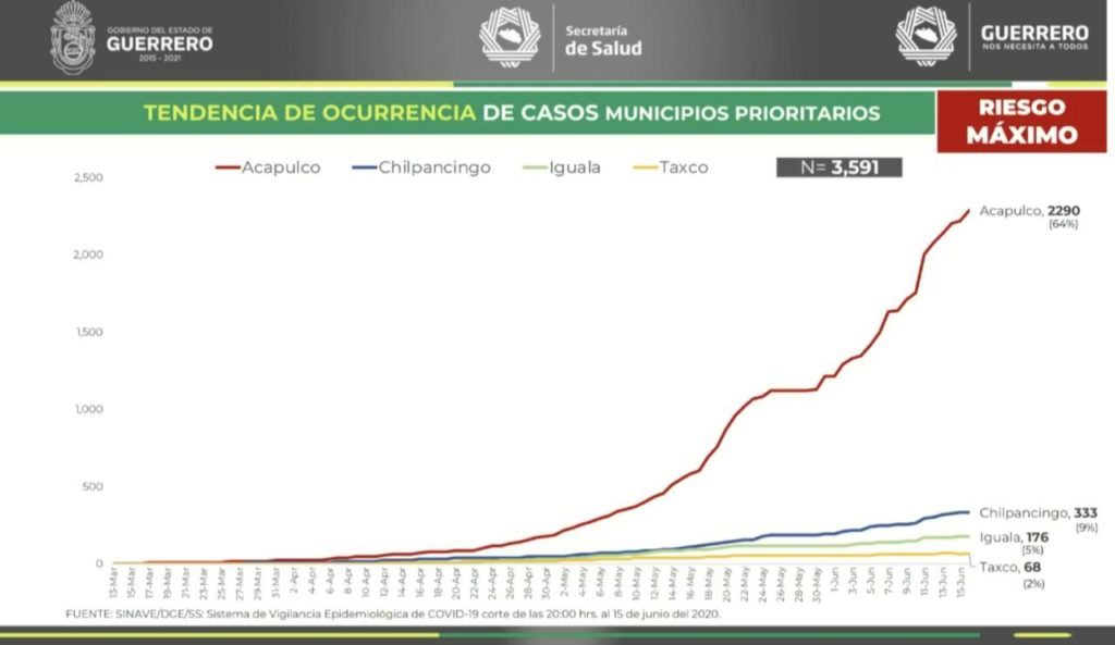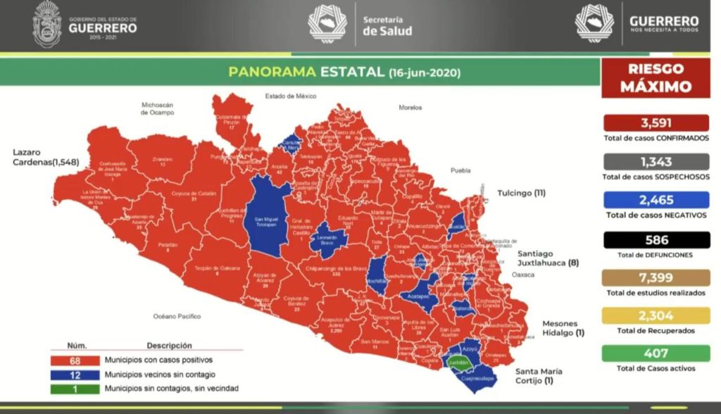 Hasta ahora Guerrero se sitúa en el lugar número 11 a nivel nacional con tres mil 591 casos acumulados y 586 decesos, de los cuales Acapulco se han acumulado dos mil 290 casos y 305 defunciones.