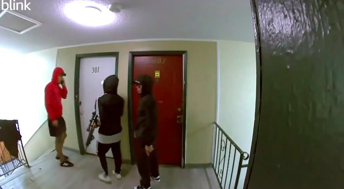 New footage obtained by @vicentearenastv shows an armed gang at a complex in Aurora.