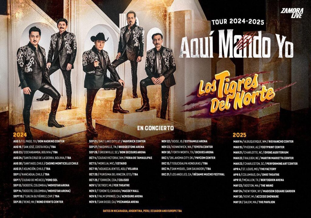 To celebrate the release of their latest EP, Los Tigres del Norte have announced a tour that will take them to major cities in Mexico, the United States and other Latin American countries such as Colombia, Bolivia, Chile, Costa Rica, Honduras and El Salvador. With their impressive stage presence and a setlist full of hits, the tour promises to be a unique and memorable experience full of singing, spite and a lot of passion for regional Mexican music.