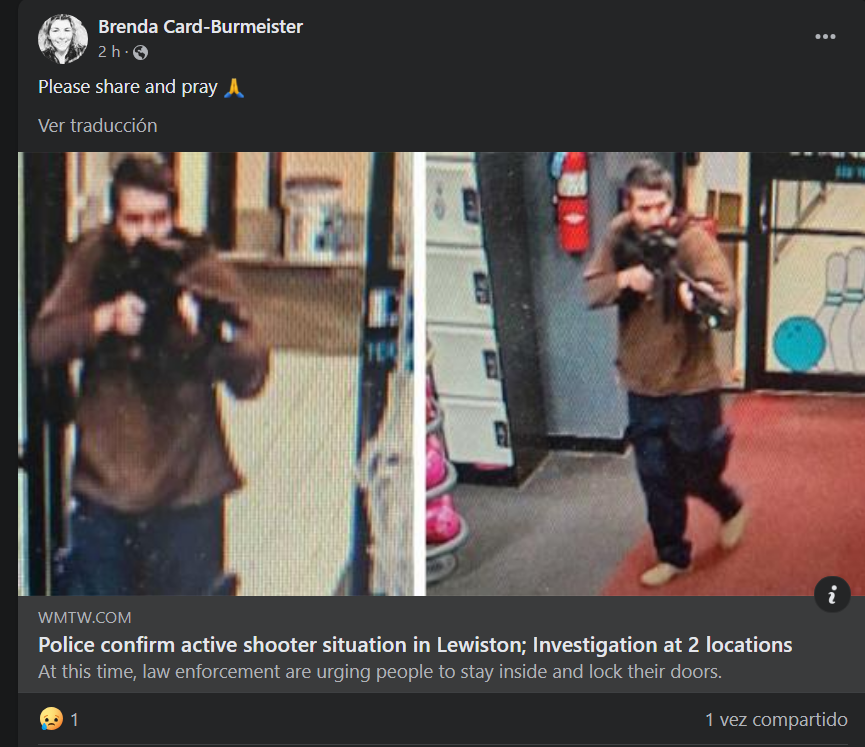 Otros informes en redes sociales: Al menos 16 personas murieron el miércoles y decenas resultaron heridas después de que un tirador abriera fuego en un lugar de boliche y un bar en Lewiston, Maine.