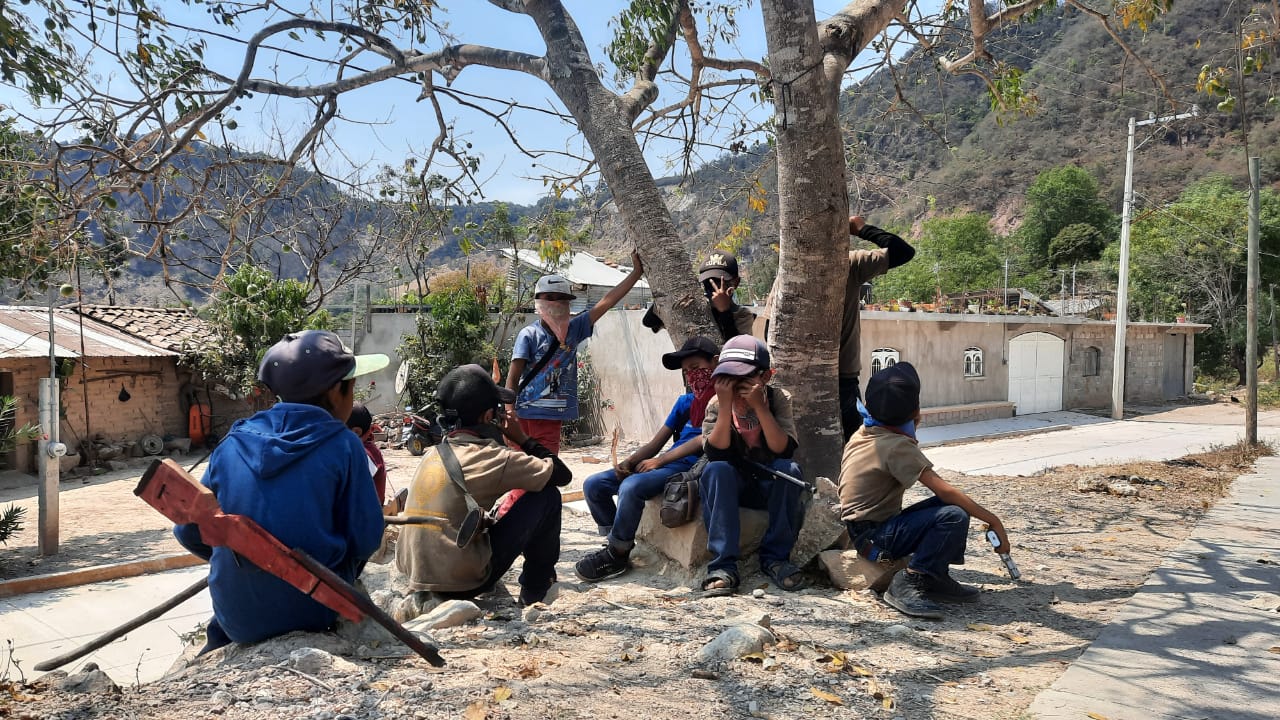 Desde hace 15 meses, alrededor de 30 menores de edad se reunen en la escuela de la localidad, donde reciben clases virtuales, y a la ve, son instruidos para poder disparar armas de fuego y protegerse de la delincuencia organizada que los hostiga.