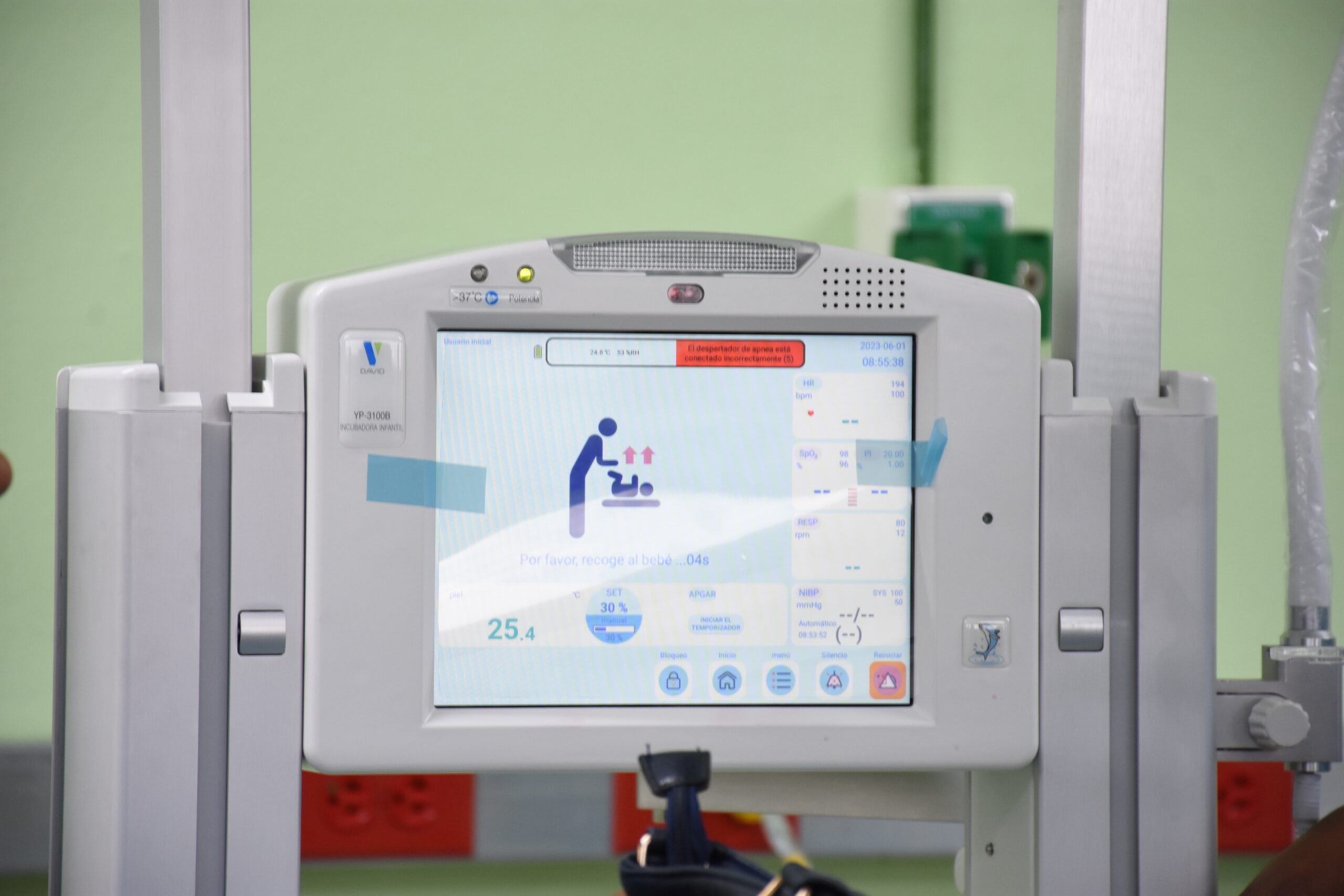 El MSPAS instaló dos incubadoras duales para bebés, con cámaras para el control en tiempo real de las constantes vitales, electrocardiogramas neonatales y otras funciones que facilitan la atención diaria. Además, el hospital cuenta con tres incubadoras duales y ocho módulos térmicos para lactantes con necesidades especiales. Las incubadoras también incluyen fototerapia, sistemas de pesaje, módulos de seguimiento de recién nacidos, monitorización de CO2, monitorización de hemoglobina, métodos de humidificación para reducir las infecciones nosocomiales y un cuidado estilo canguro. La monitorización del óxido nítrico se realiza de forma inteligente y en tiempo real.
