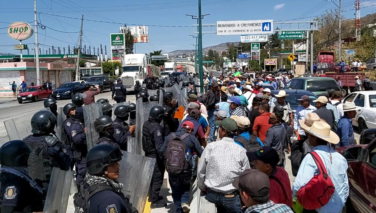 Sin acuerdos, los campesinos bloquearon nuevamente la Autopista del Sol en sus dos sentidos, y de inmediato los elementos policiacos iniciaron el desalojo, utilizando escudos, filetes y gas lacrimógeno en contra de los manifestantes.