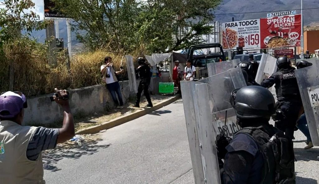 La fotógrafa, Jessica Torres Barrera del Periódico “El Sur”, fue empujada, obstruyeron todo el tiempo su labor periodística, y además fue agredida verbalmente por los policías, “quítate pinche chamaca”, “vete a cocinar”, dijo otro de los uniformados.