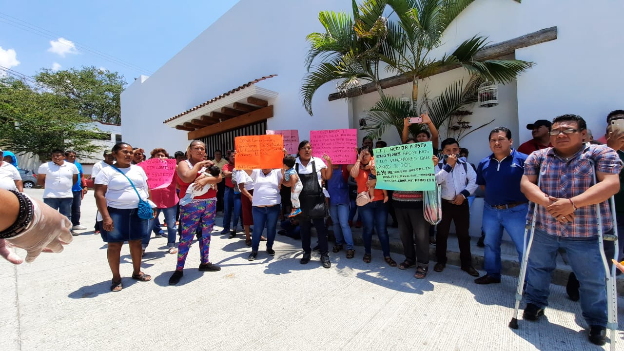 Una de las manifestantes que se dedica a la venta de frituras, dijo que no quieren despensas o que les regalen el dinero, pero que se les otorguen créditos flexibles que puedan ir pagando poco a poco.