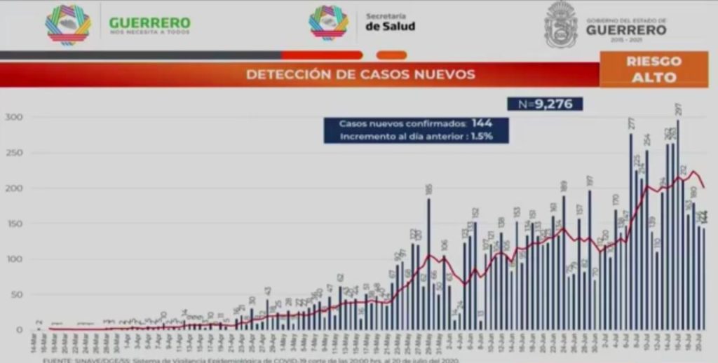 Chilpancingo, Guerrero.- La Secretaría de Salud Guerrero (SSa), reportó este martes que en los últimos cuatro días se ha registrado un ligero descenso en el número de contagios por Covid-19, aunque aún no se puede celebrar nada.