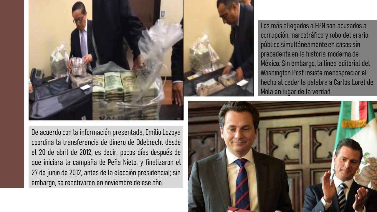 De acuerdo con la información presentada, Lozoya coordina la transferencia tuvo lugar el 20 de abril de 2012, es decir, pocos días después de que iniciara la campaña de Peña Nieto, y finalizaron el 27 de junio de 2012, antes de la elección presidencial; sin embargo, se reactivaron en noviembre de ese año.