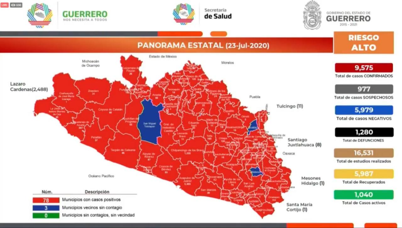 En lo que va de la semana epidemiológica número 30 el Estado permanece en semáforo naranja con 78 municipios con contagios y sólo tres libres de este padecimiento, que son Cualác Iliatenco y San Miguel Totolapan.
