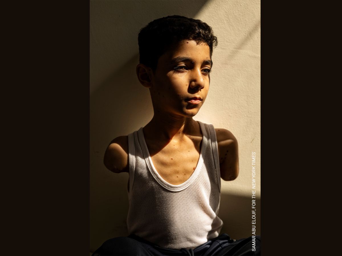 La fotógrafa palestina Samar Abu Elouf ganó el premio Foto del Año del World Press Photo2025, gracias a una impactante imagen que retrata la historia de Mahmoud Ajjour, un niño palestino de nueve años que perdió ambos brazos tras un ataque israelí en marzo de 2024 en Gaza.